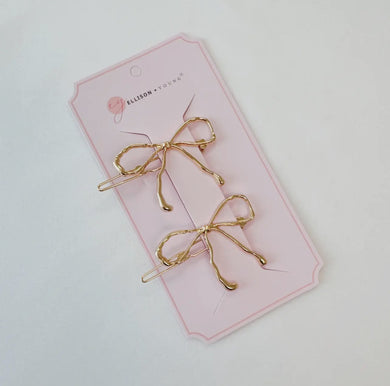 • Set of 2 Wobbly Gold Metal Bow Barrette Clips