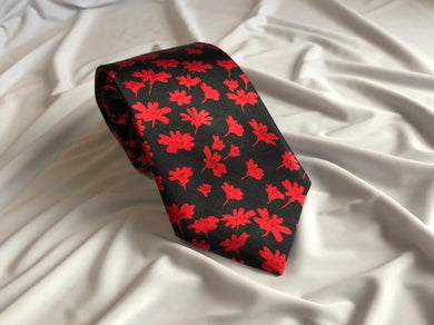 Last One | Men’s Necktie in Black And Beige Floral Linen | Limited