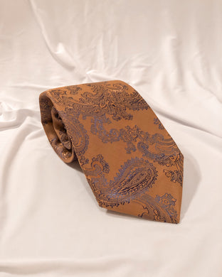 Men’s Cotton Necktie in Blue + Tan Paisley
