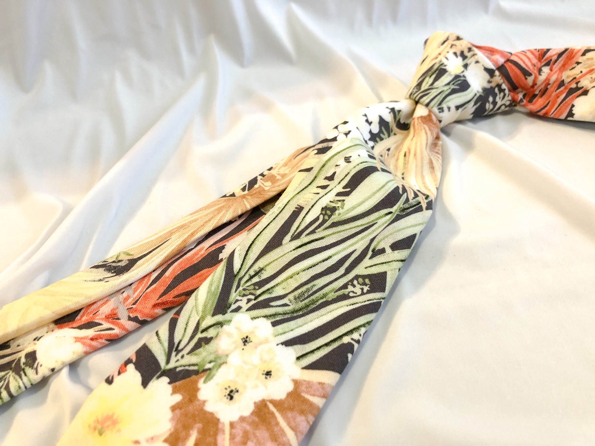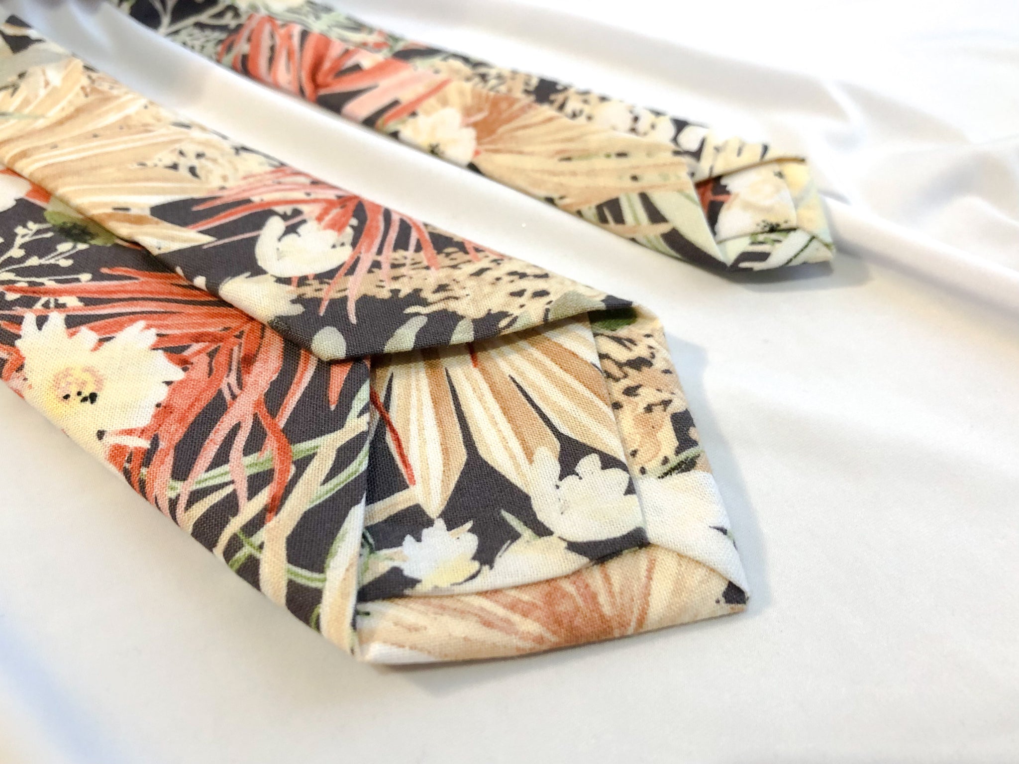 -Tie is 60 inches long. If you would like a longer/shorter tie, send me a message and I can make it for you!