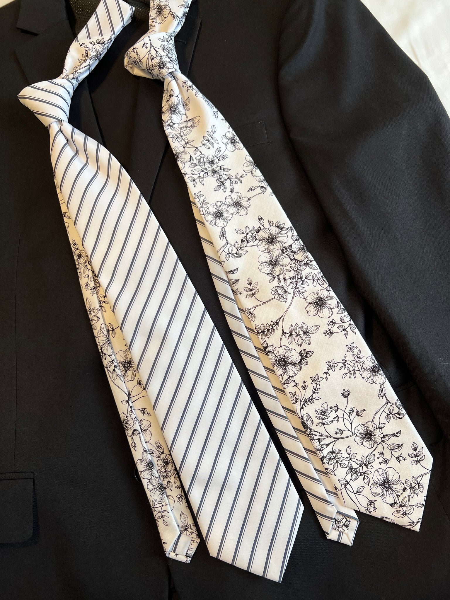Pocket squares are 12x12 inches. Pocket square will be in the floral print, or leave a note at checkout if you’d like the stripe.