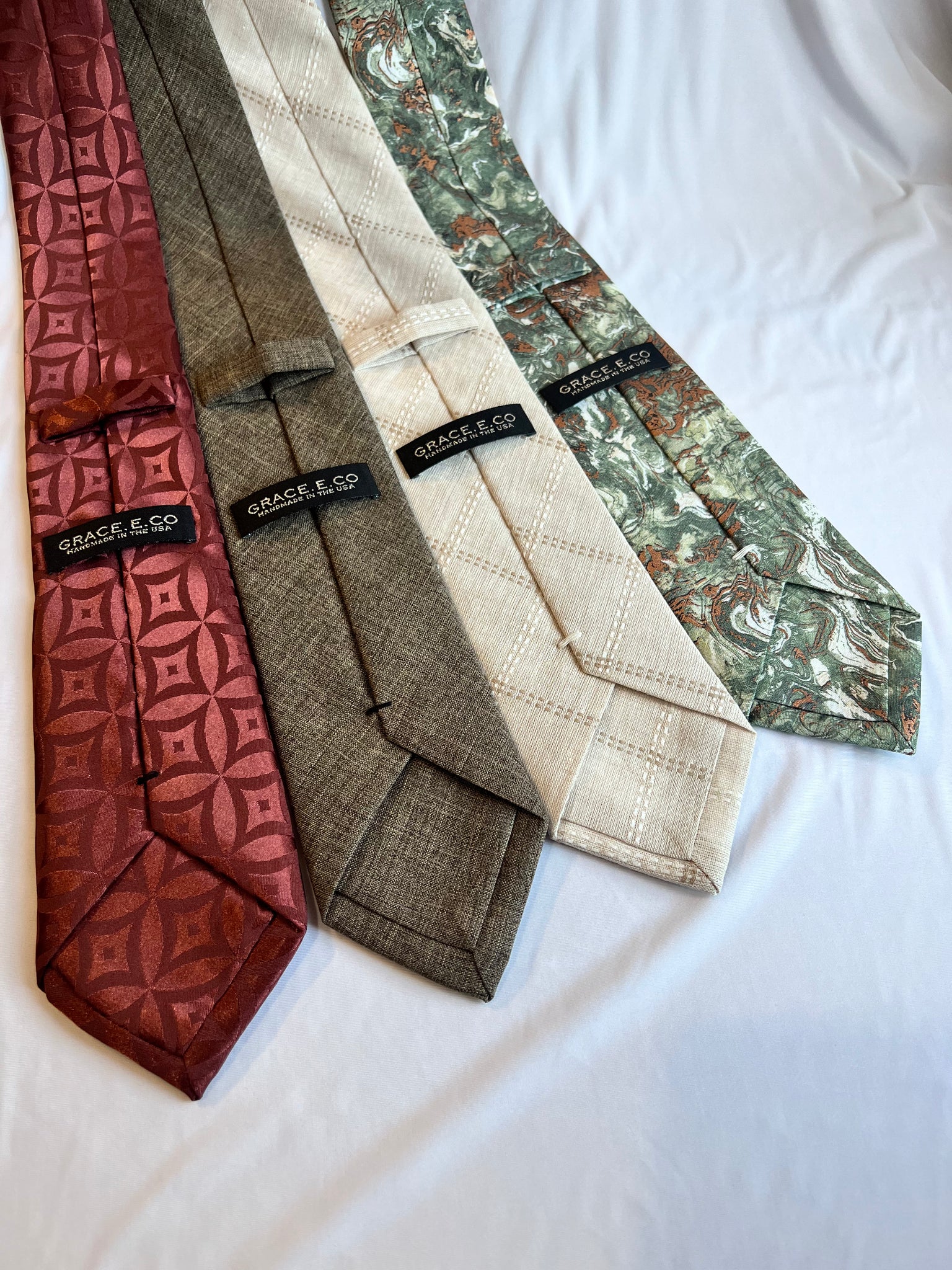 Crafted with a custom width and length for a tailored fit. Simply choose your width before adding to cart. Then, if necessary, leave a note at checkout with your desired length. The standard length for all of these ties is 60 inches long, and pocket squares are 12x12 inches.