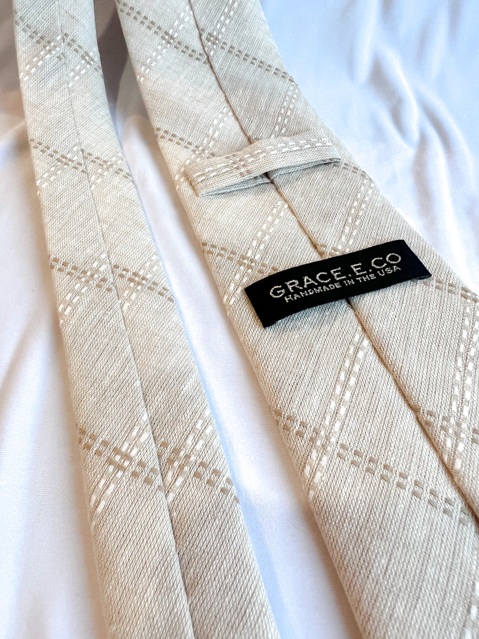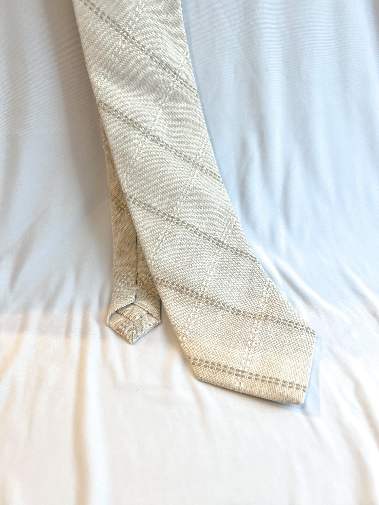 This limited edition tie is the perfect piece for your summer wardrobe. It features a lightweight linen construction in a beige windowpane design, crafted with a classic woven thread. Upgrade your look effortlessly with this timeless piece.